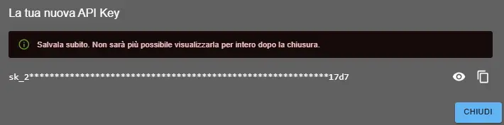 - ⚠️ IMPORTANTE: Copia e salva immediatamente la chiave in un luogo sicuro